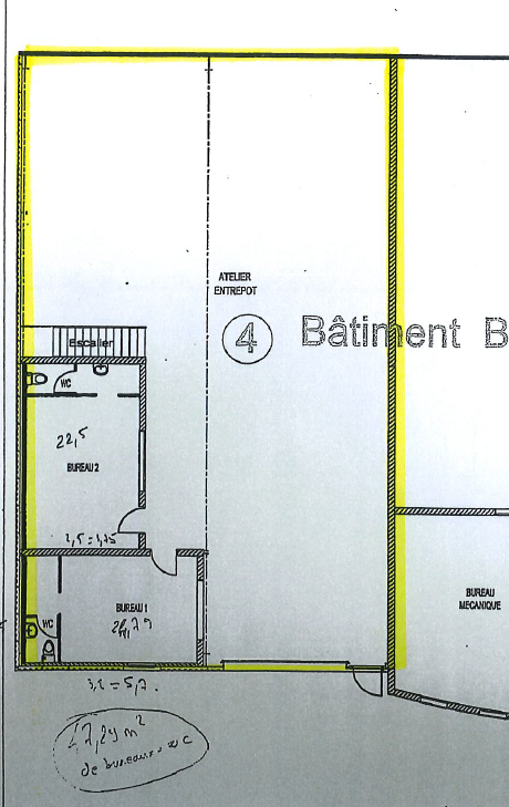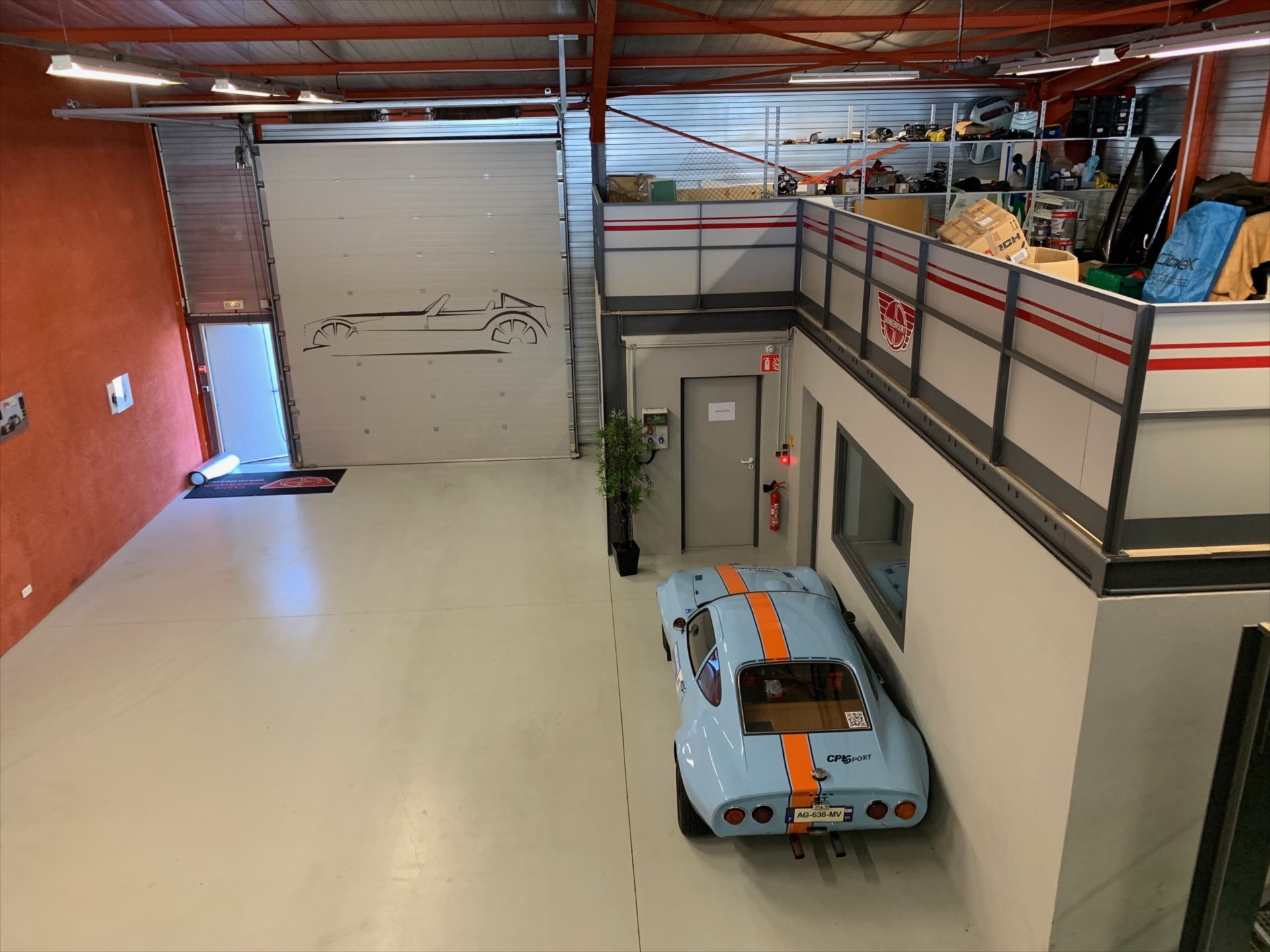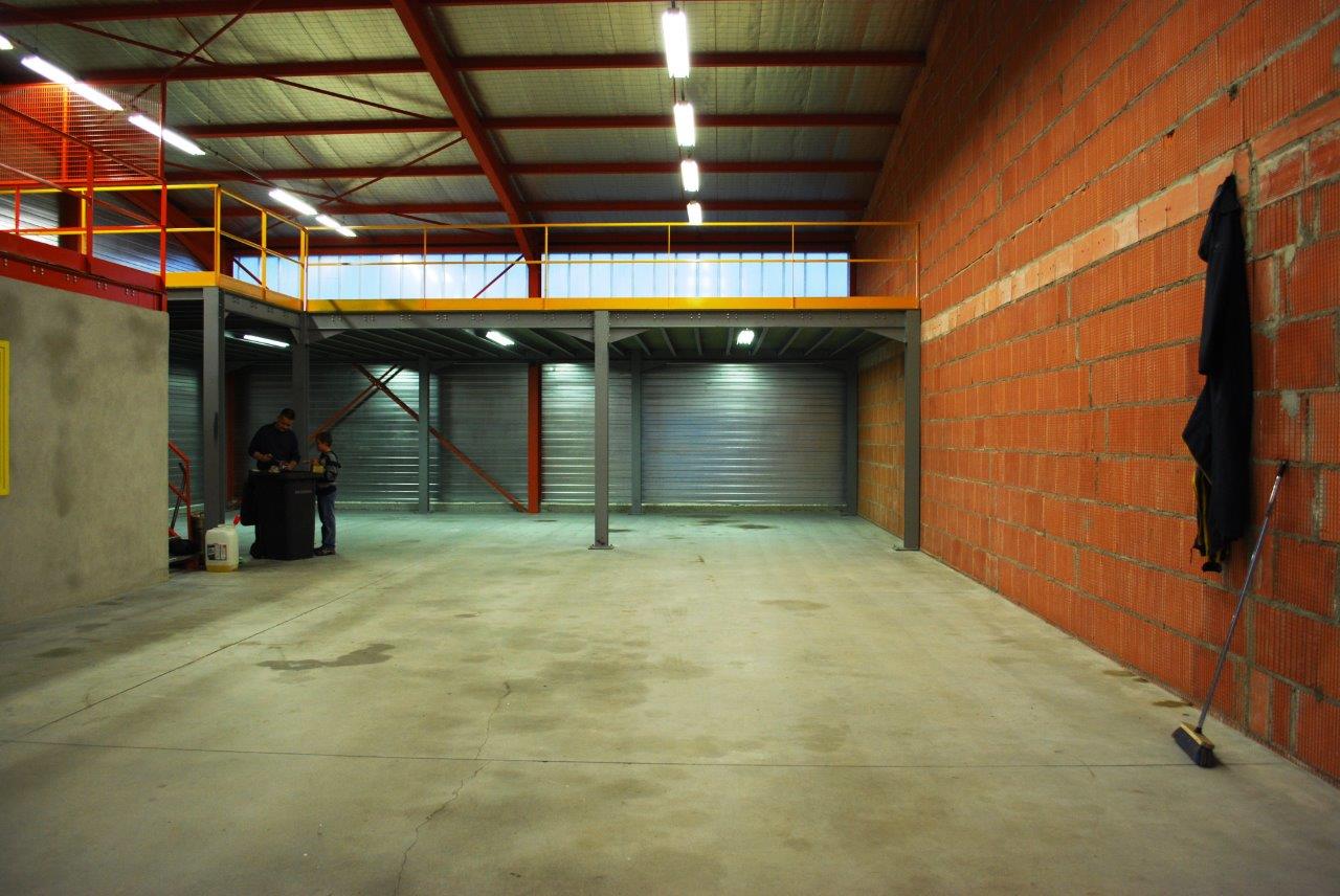 HSP 6 m², 2.80 m sous mezzanine, porte sectionnelle manuelle de 4.5x4 m.