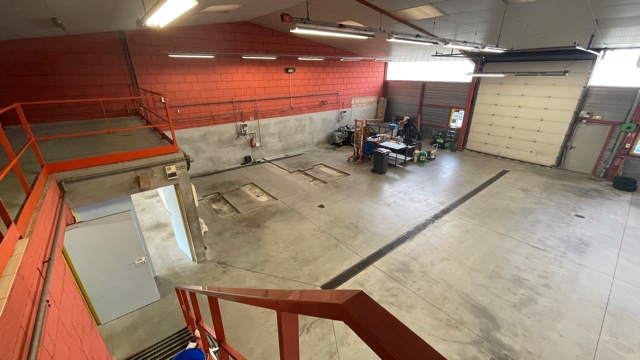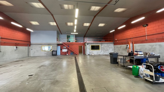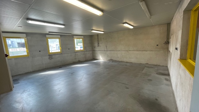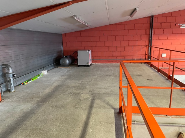 Il comprend un atelier chauffé pour un total d'environ 315 m², un espace stockage en mezzanine d’environ 45 m², 67 m² bureaux, locaux sociaux (dont sanitaires, douches et vestiaires) et réfectoire sur deux niveaux. Aire de lavage et possibilité d'installer une benne à l'arrière du bâtiment. Porte sectionnelle automatisée. Locaux en bon état, absence d’amiante. Parkings libres